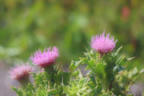 海辺へ抜ける小道に少しだけ咲いていたハマアザミです。ほんの数個体しか見られませんでした。主として海岸に生育し、砂地や砂礫地を好む海浜植物で、海岸の開発のため生育可能な海岸の減少とともに、個体数も減少しました。白い花を付ける個体もいるらしく、シロバナハマアザミと呼ばれています。