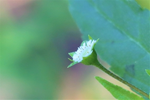小道には、タカサブロウの小さな花が咲いています。水田雑草と呼ばれるほど、昔は日本の水田に普通に自生していました。現在よく見られるのは外来種のアメリカタカサブロウがほとんどで、在来種のタカサブロウ(モトタカサブロウ)はほとんど見られなくなりました。2種類の最大の違いはタネの左右に翼があり、ずんぐりしているのがタカサブロウです(アメリカタカサブロウは翼がなく細い)。この子を確認したところモトタカサブロウでした。出会いに感謝!