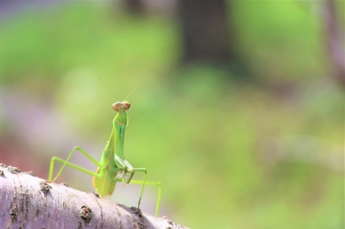 今日も収穫なしか、と思いながら帰路に着こうとしたところ、桜の枝からこちらを見ている、一匹の大きなカマキリと目が合いました。あまりの嬉しさに「ありがとう」と声を掛けると、「ん、もう~」と甘えたような表情を見せてくれました。かわいらしいですね。