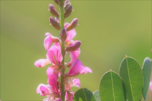 メドハギは、道端や池の土手など日当たりの良いところに生えるハギ属の多年草です。土壌の改良や緑肥としても利用されることがあり、環境保全にも役立っているそうです。古くは、葉や茎を染料として、近年では健康茶に使うことでも知られています(全体を天日干しさせて、お茶のようにして飲むそうです)。本当に小さな花ですが、その持っている力はすごいですね。