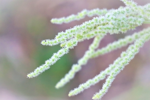 蒸し暑い林の中を歩いていると、大きなヤブマオがかわいい花を満開に付けていました。イラクサ目イラクサ科の多年草で、山地から人里まで幅広い環境で生育します。食指を伸ばしたような花を見るのは初めてで、ちょっと感動しました。