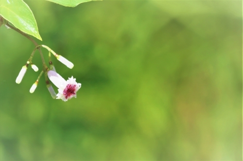 ヘクソカズラは、アカネ科へクソカズラ属のつる性多年草で、葉や茎など全草を傷つけると、悪臭を放つことからその名が付きました。日本最古の和歌集である「万葉集」の中にも「糞葛(くそかずら)」の名で詠まれているそうで、美しいものには・・・です。やぶや道端などに生える雑草ですが、かわいい花を咲かせます。
