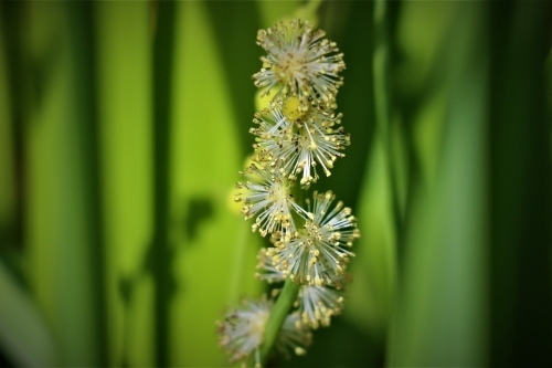 園地に近い小さな川に、数個体のミクリの花が隠れるように咲いていました。湖沼、水路などに群生する多年草の抽水植物で、草丈は2メートルにもなるそうです。三重県では、ほとんど絶滅に近い状態にあり、個体を確認できたことや、満開の花を見ることができたことに、感謝の気持ちでいっぱいです。来年も見ることができるかな~。