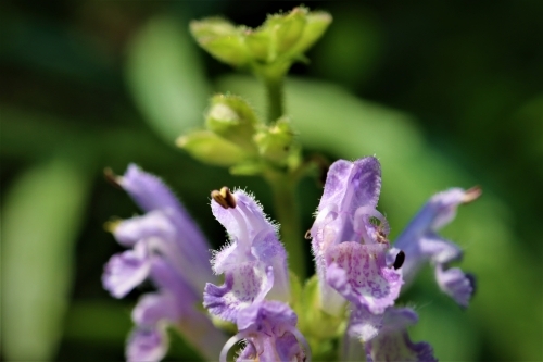 アキノタムラソウは、茎の上部で分枝し、先端に10~25センチほどの淡紫色の花を付けます。花びらの表面に柔毛