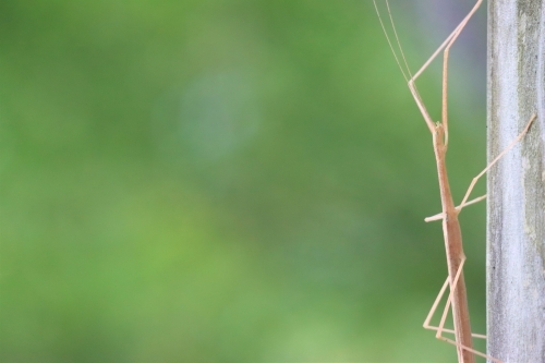 最後の最後にやっとのことでナナフシに出会うことができました。ナナフシ目に属する昆虫で、「七」は「たくさん」という程度の意味だそうです。ナナフシモドキとは触角の長さで見分けます。少し涼しくなってきたので、顔を見せてくれたのかもしれません。緑色の目が魅力的です。