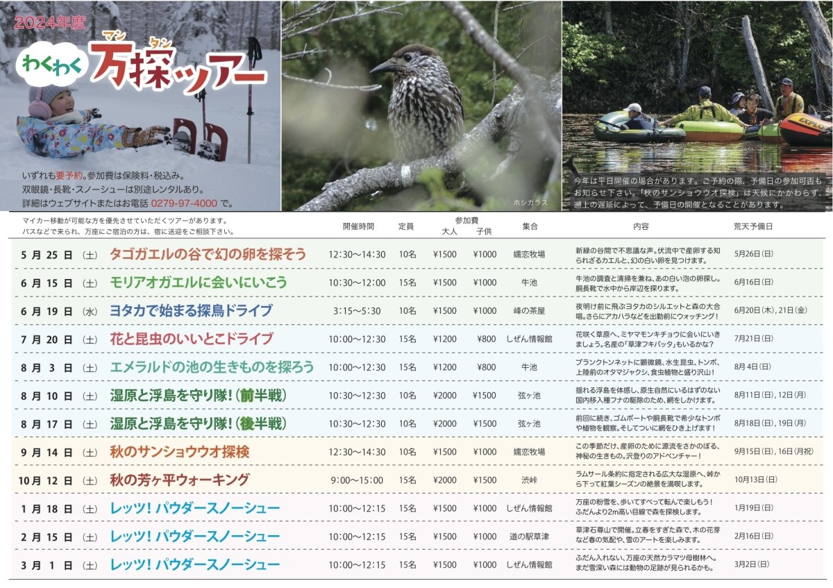 冬のスノーシューツアーはまだ予約を受け付けています。スノーシューのレンタルもありますので、気になる方は万座しぜん情報館へお気軽にお問い合わせください。