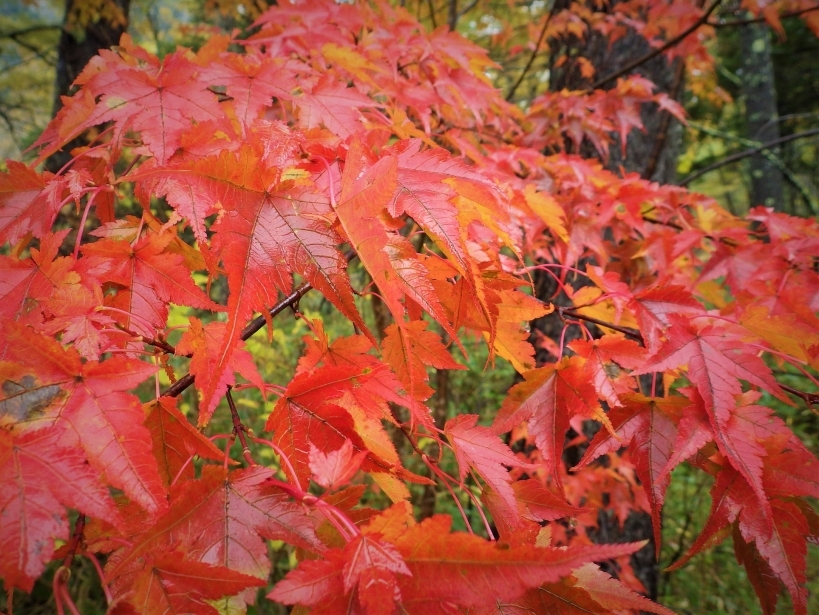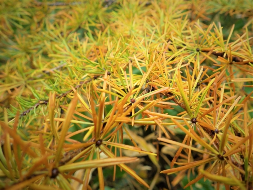園内では、カラマツの黄葉や数は少ないですがカエデの紅葉が楽しめます。カエデの紅葉をもっと楽しみたい方は必見、河童橋から明神池方面へ続く右岸歩道がおススメです。