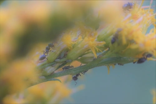 セイタカアワダチソウの花には、アブラムシを求めて大きなアリ達が群がっていました。これほどたくさんのアリを見たのは久しぶりです。これから秋も深まり、季節は冬へと向かっていきます。それぞれ一生懸命いまを生きているのですね。