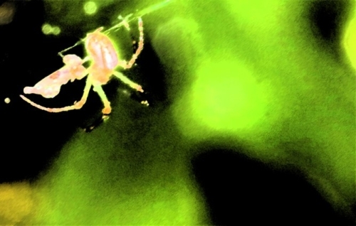秋の暗がりに潜んでいたのはウンカの仲間です。夕方近くになると日が暮れるのは早く、闇と静けさに押しつぶされそうになります。この子もどんな気持ちで寒い夜を過ごすのでしょうか・・・。