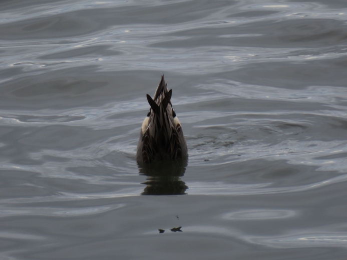 こちらはオナガガモの逆立ち採餌。お尻フリフリ餌探し。かわいいです。