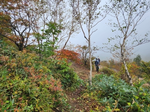 10月はまだまだ残暑が厳しかった記憶ですが、笹刈りをした10月4日には、標高の高い野反湖では少し紅葉が始まっていました。