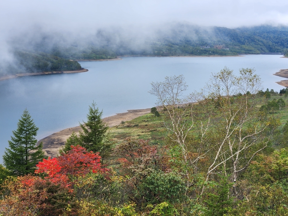 この日の野反湖は上に雲がかかり周りの山は見えなかったです。