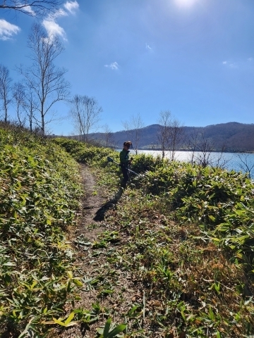 1回目はシラネアオイの保全で、2回目は湖の周りの植物保護の笹刈りです。