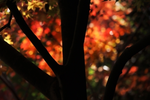 秋の頃のように真っ赤に色づいているのはモミジです。植物にとっては私たちが感じる寒さ感覚とはまったく違う機能があるのでしょうね。遠くから見ていると季節を間違えてしまいそうな景色です。でも、凜とした空気感はやはり冬そのものです。