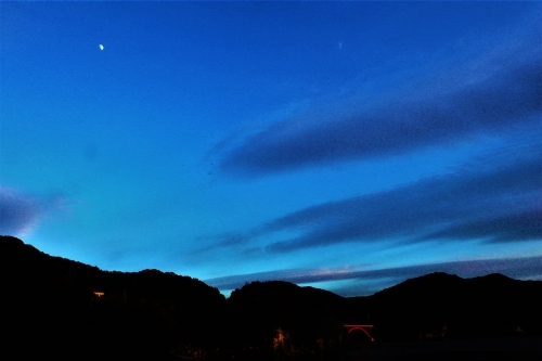 この季節は日が暮れるのが早く、あっという間に夜景色に変身します。澄んだ空には綺麗な半月が光っており、静寂が辺りを支配していきます。