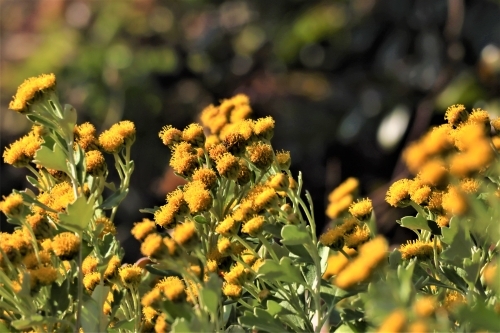 海辺の岩場には、アゼトウナがびっしり咲いていました。キク科アゼトウナ属に分類される多年草で、本州(伊豆半島~紀伊半島)、四国、九州に分布します。花期は8月~12月ということで今が見頃です。海辺のこの場所にこれほどの群生地があることを知りませんでした。陽も傾き掛けている時の撮影だったので、花が光り輝いて綺麗です!岡山県では、絶滅危惧Ⅰ類に指定されています。