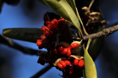トベラは、トベラ科トベラ属の常緑低木で、別名トビラノキとも呼ばれています。枝葉を切ると悪臭を放つため、節分にイワシの頭などとともに、鬼を払う魔除けとして戸口に掲げられた風習があり、「扉の木」が転訛してトベラになったそうです。秋になると真っ赤な実が出てきますが、無味無臭で美味しくないそうです。新潟県では、絶滅の恐れのある地域個体群(LP)に指定されています。