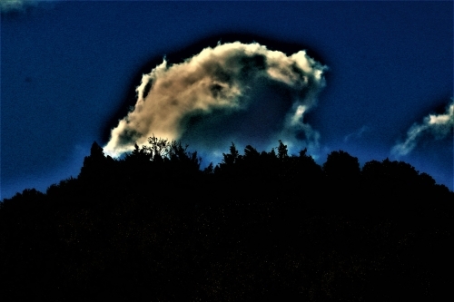 辺りが暗くなり始めた頃、大きな雨雲が現れました。光を放つその姿は見るものを引きつけます。どれほどの水分を含んでいるのでしょうか。そこがすごく気になります!
