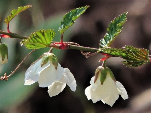 横山園地(志摩市)の山間に入ると、モミジイチゴの花が咲いていました。バラ目バラ科キイチゴ属に分類される落葉広葉樹の低木で、日本の本州(東北地方から中部地方)の日当たりのよい雑木林や山地などに分布します。代表的なキイチゴで、野イチゴの中でも特に上品で美味しいと言われています。ぜひ、食べてみたいですね。