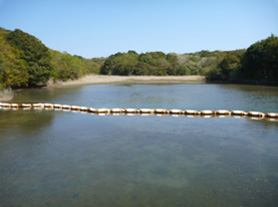 現在、「新しい里海創生によるまちづくり」をめざしている地元志摩市を初め、関係機関、団体の連携協働のよる里海創生のための総合的な取り組みが進められていますが、その一環として、かつて干潟だった沿岸休耕地に海水を導入して干潟の再生をめざす試みが始まっています。
