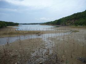 | 対象の沿岸休耕地(堤防内) | 干潮時の堤防前の海域 |