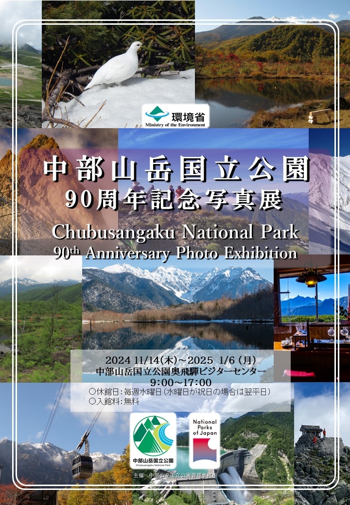 環境省中部山岳国立公園管理事務所では、2024年が中部山岳国立公園の指定90周年にあたることから、これを記念した写真展を開催しています。