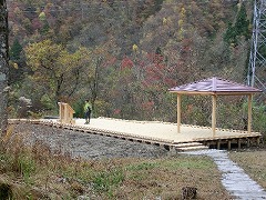 中部地方環境事務所では、白山市白峰の根倉谷園地において、木デッキ等の整備工事を9月から行ってきましたが、10月末に各種施設が完成しましたので、ご報告いたします。