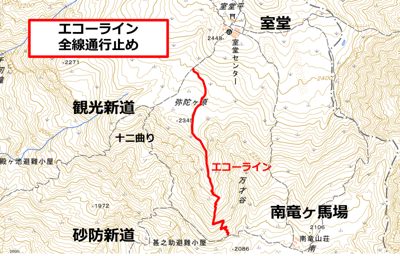 弥陀ヶ原線歩道(通称エコーライン)全線通行止め情報