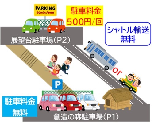 実施期間中、展望台駐車場及びシャトルバスの利用者を対象にアンケート調査を実施させて頂きますので、ご協力をお願いいたします。