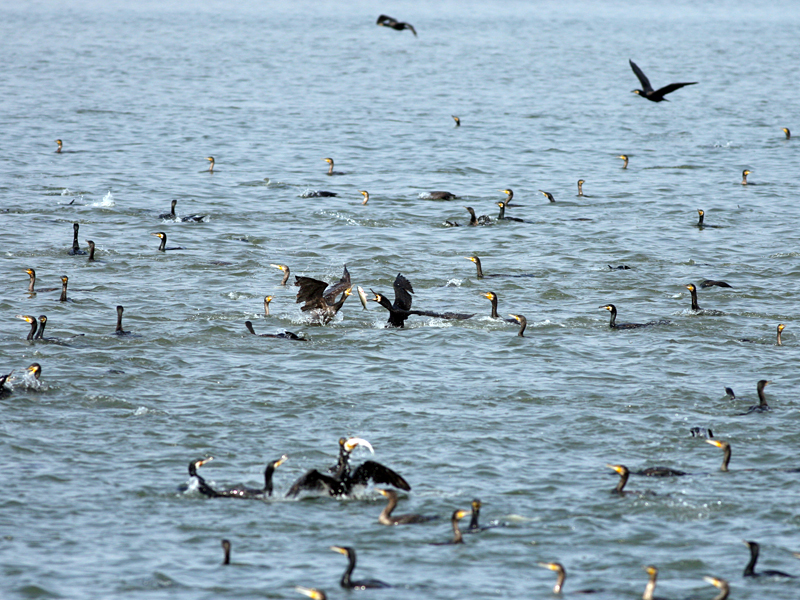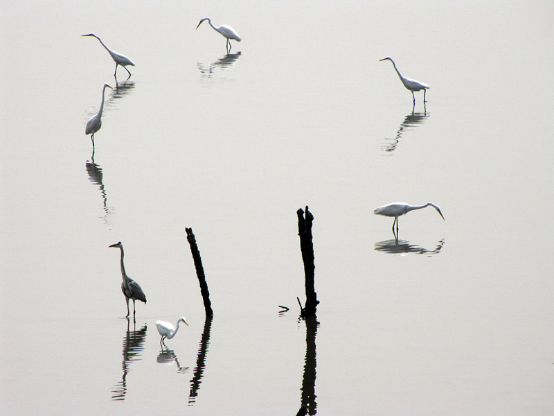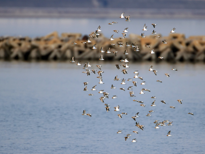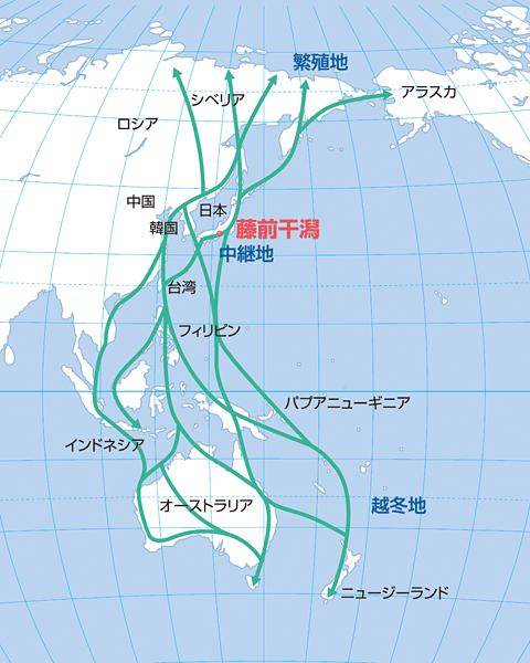藤前干潟は、東アジア-オーストラリア地域シギ・チドリ類及びガンガモ類等の主たる渡りの経路である伊勢湾に残された数少ない干潟です。干潟周辺には河川・海の他、水田や緑地、ヨシ原等多様な環境があり様々な生きものを育んでいます。例えば、干潟内には多くの底生生物が生息しており、それを餌に様々な鳥類が多数渡来します。干潟周辺でこれまでに確認された鳥類は172種もいます。シギ・チドリ類(41種)及びガンカモ類の渡り鳥の多くは繁殖地と越冬地の間を移動する際の中継地点又は越冬地として春秋及び冬期に藤前干潟に多数渡来します。各河川の下流部等にはヨシの群生地があることから草原性の鳥類が、また、周辺には水田があることから淡水性のシギ、サギ、ガンガモ類が、さらに稲永公園や弥富野鳥園等の緑地もあることから森林性鳥類が生息しています。ミサゴ等の猛禽類も生息しています。